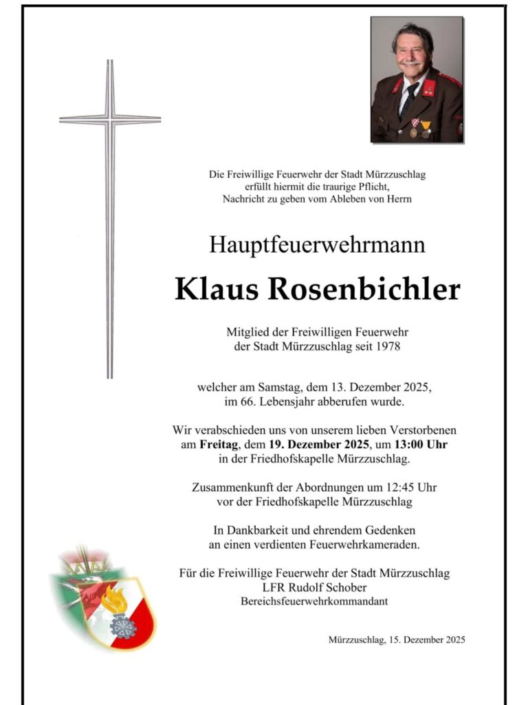 Die Freiwillige Feuerwehr Mürzzuschlag trauert um HFM Klaus Rosenbichler, welcher …