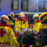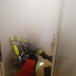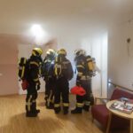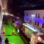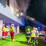 Während ein Atemschutztrupp mittels Fluchthauben betroffene Heimbewohner in Sicherheit brachte, wurde parallel eine Person über die Drehleiter gerettet und die Personensuche fortgesetzt.