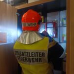 Umgehend wurde die Betriebsfeuerwehr voestalpine Böhler Bleche nachalarmiert, ein Atemschutztrupp rüstete sich aus und begab sich in das 1. OG. In der Zwischenzeit wurde nach genauerer Lokalisierung die Drehleiter in Stellung gebracht und ein weiterer Atemschutztrupp ins Gebäude geschickt.