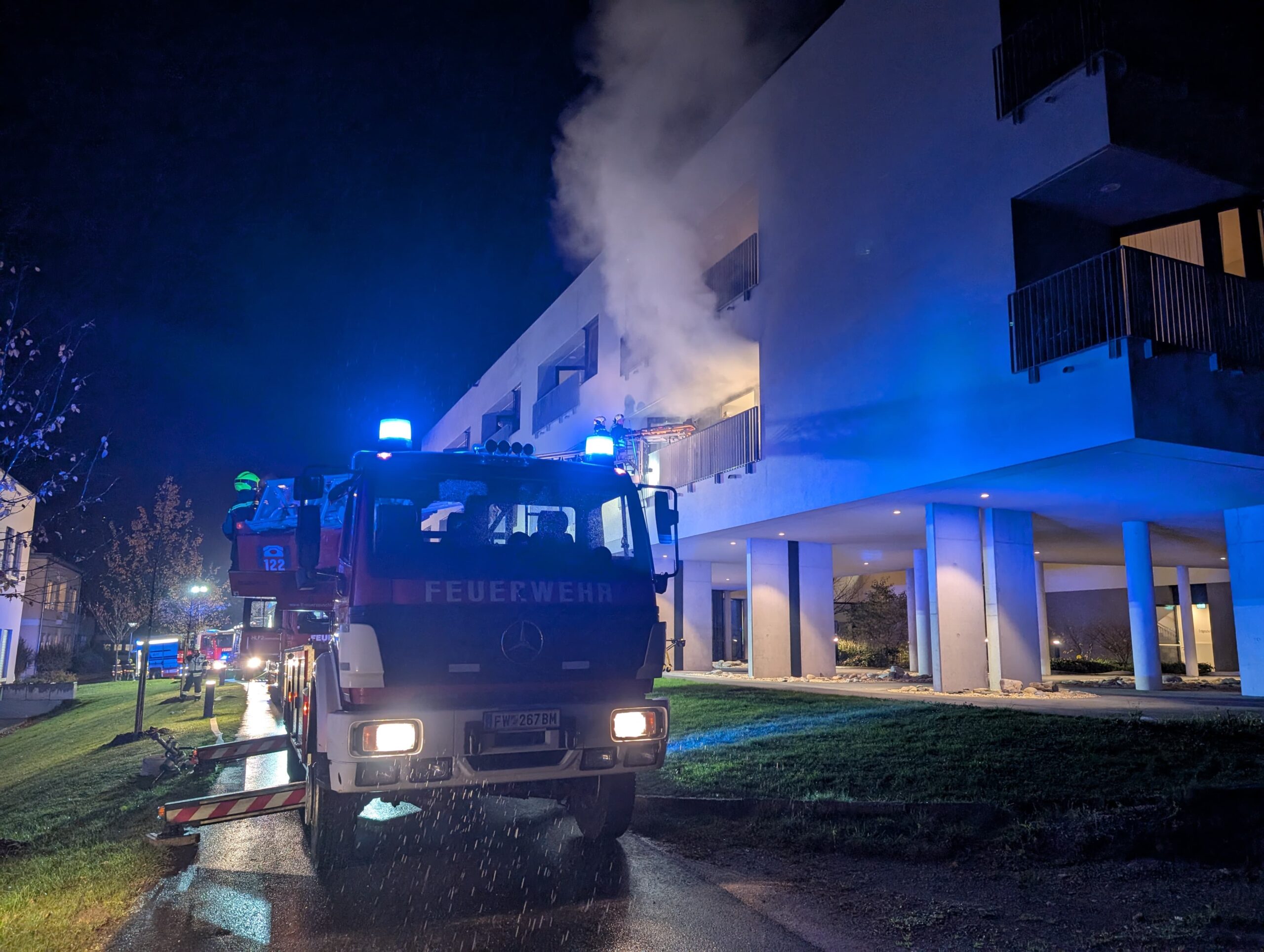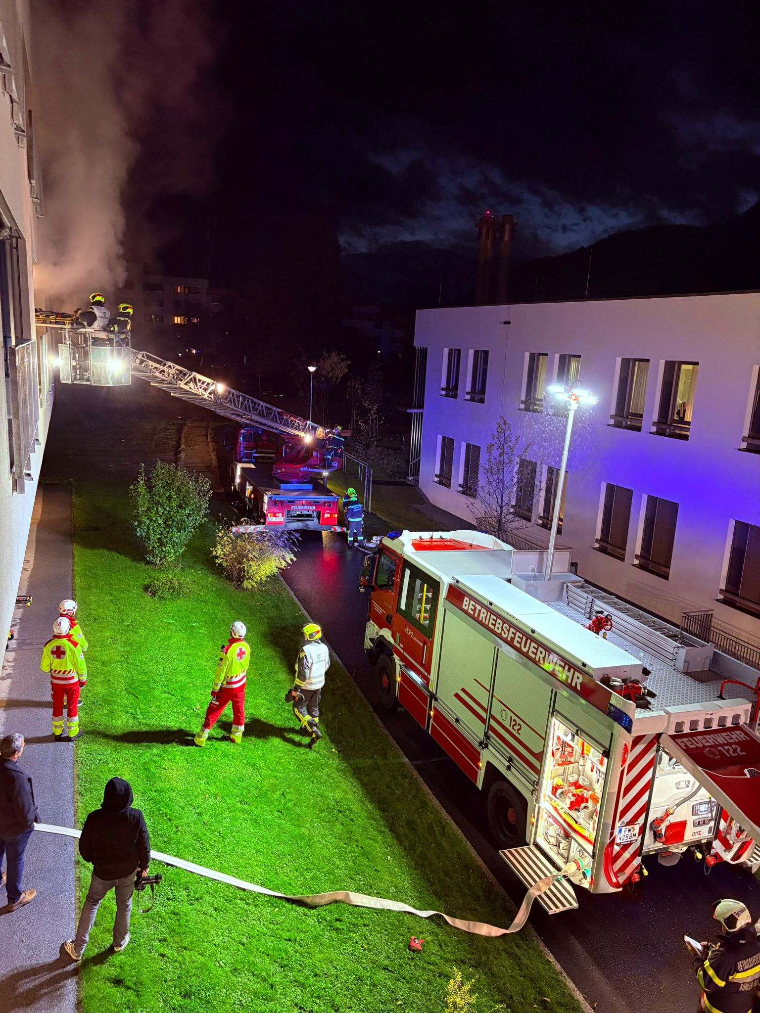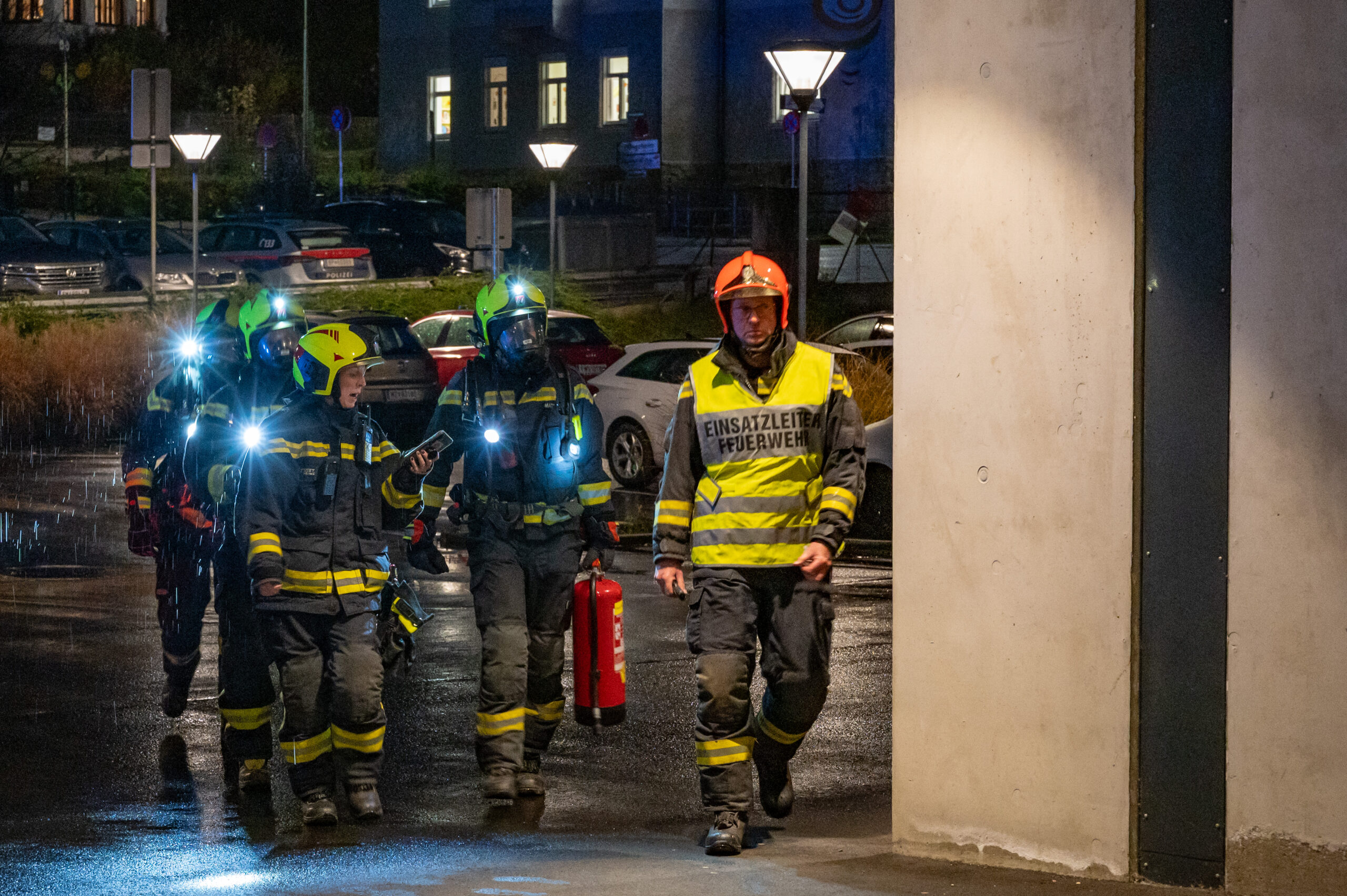 Umgehend wurde die Betriebsfeuerwehr voestalpine Böhler Bleche nachalarmiert, ein Atemschutztrupp rüstete sich aus und begab sich in das 1. OG. In der Zwischenzeit wurde nach genauerer Lokalisierung die Drehleiter in Stellung gebracht und ein weiterer Atemschutztrupp ins Gebäude geschickt.