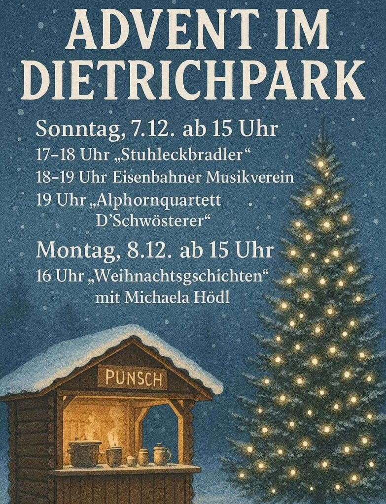 Heuer erstmalig laden unsere Kameraden Rainer und Franz mit Freunden zum „Advent im Dietrichpark„