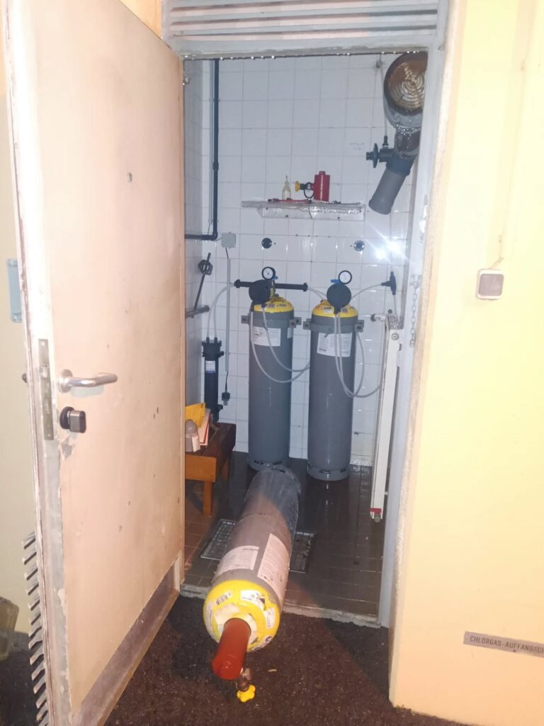 Im Anschluss fand eine allgemeine Schulung zum Thema Chlorgas und den Gegebenheiten im Hallenbad statt.