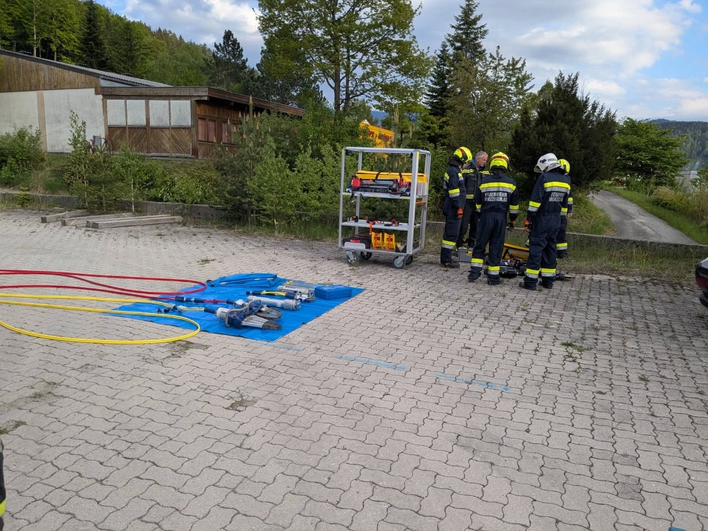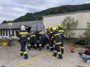 Der erste Teil bestand aus einer theoretischen Schulung der einzelnen Geräte, beim zweiten Teil wurde die Mannschaft in zwei Gruppen geteilt um gemeinsam jeweils eine Menschenrettung aus den zuvor vorbereiteten Unfallfahrzeugen durchzuführen.