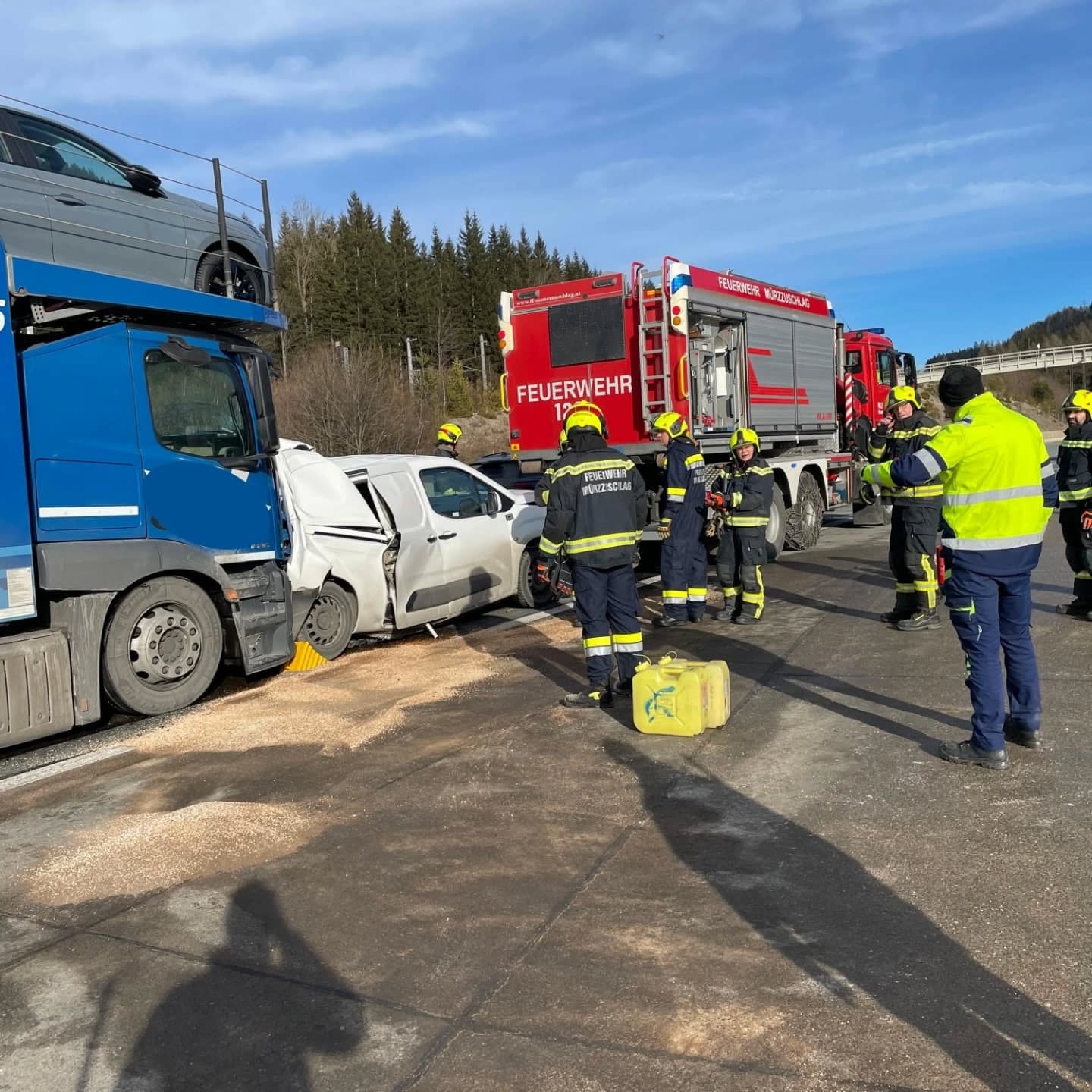 Eingesetzt waren: FF Mürzzuschlag:WLF-K,RLF-T Weitere Einsatzkräfte: Rotes Kreuz Polizei ASFINAG