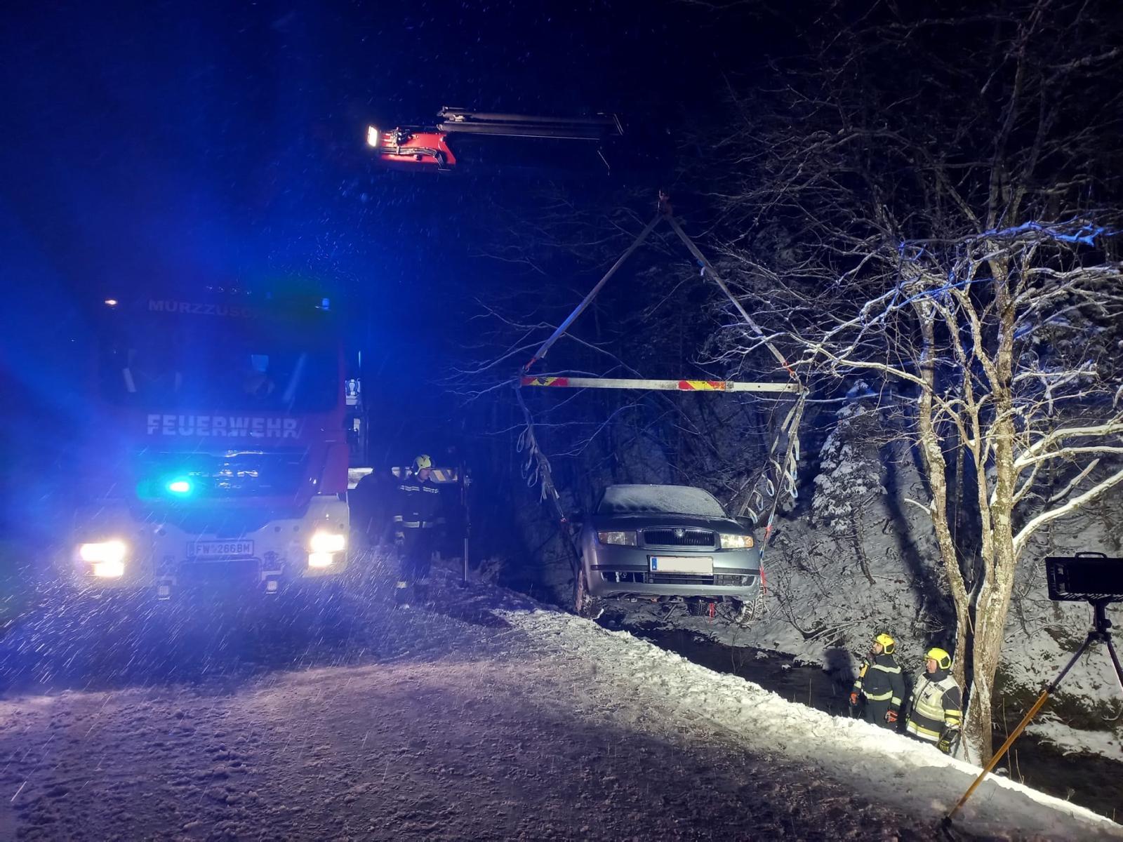 Am 24.12.2025 wurde die Freiwillige Feuerwehr Mürzzuschlag zur Unterstützung der Feuerwehr Mürzsteg mit dem WLF zu einer Fahrzeugbergung auf die L113 Niederalplstraße alarmiert.