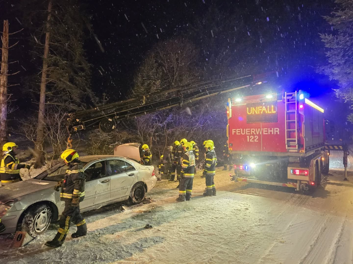 Kurz nach Abschluss der Nachbereitungen vom Zimmerbrand in Kapellen am 22.11. wurde das WLF-K als Stützpunktfahrzeug zu einer Fahrzeugbergung nach Rettenegg (Bez. Weiz) alarmiert.