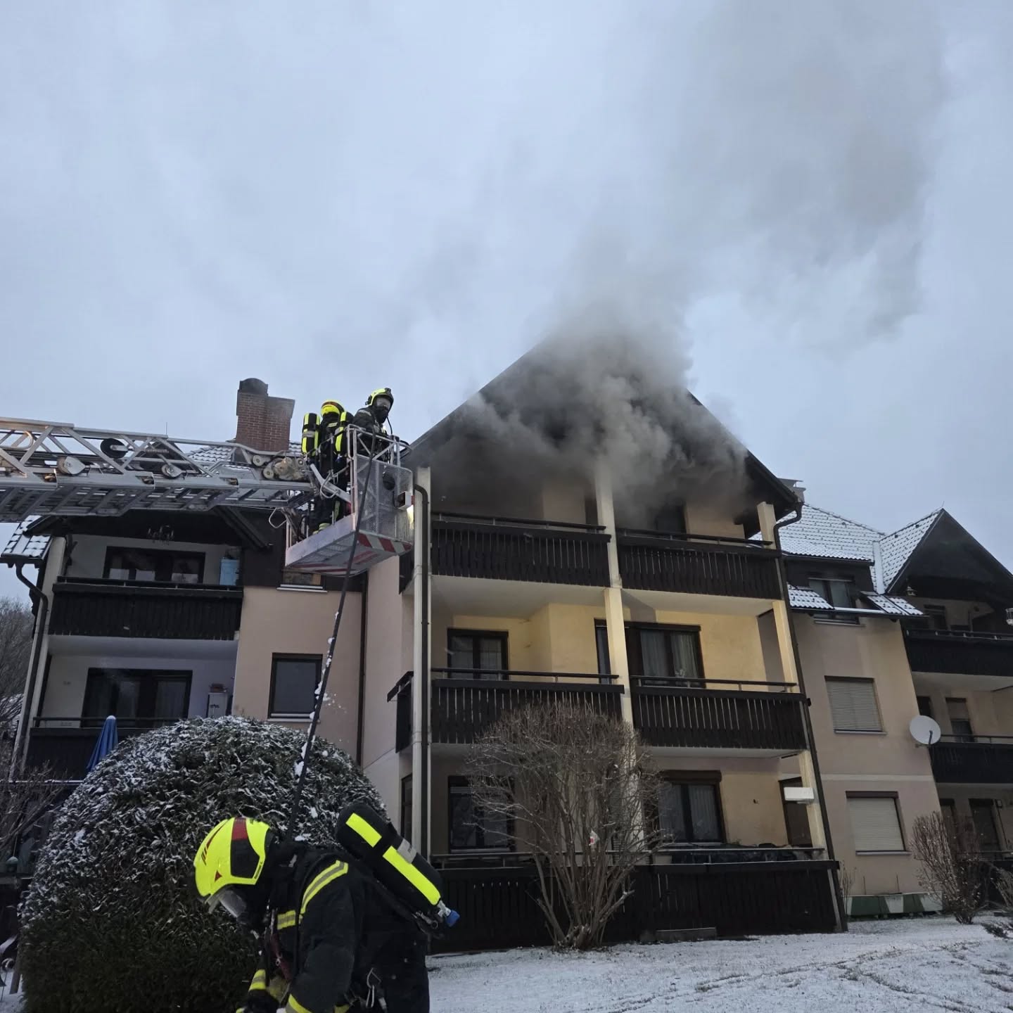 In einer Wohnung im Obergeschoss eines Mehrparteienhauses brach ein Brand aus, Bewohner nahmen die Rauchentwicklung im Stiegenhaus wahr und alarmierten die Einsatzkräfte.
